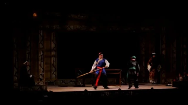 This adaptation was done in the style of Jingju (Beijing Opera), a traditional Chinese theatre form that incorporates acting, song, music, percussion, dance, martial arts, and acrobatics.